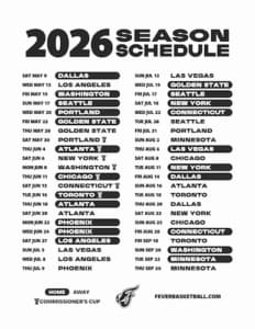 The Indiana Fever’s schedule for the 2026 season has been released. Keep your schedule up to date with the Indiana Fever as we embark on a brand new season. You can now download the entire 2026 Indiana Fever schedule to print (Downloadable PDF) or choose from desktop (standard), desktop (ultra wide), and mobile wallpaper options below: